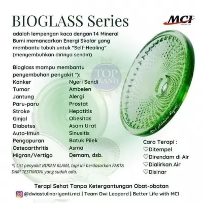 Bioglass dikatakan dapat membersihkan racun di dalam tubuh, melancarkan sembelit, mempercantik kulit, menyembuhkan autisme dan ayan, menghindari pengeroposan tulang, serta menyembuhkan penyakit diabetes, sakit kepala, influenza, penyakit jantung koroner, stroke, mag, ginjal, hipertensi, berbagai jenis kanker, asam urat